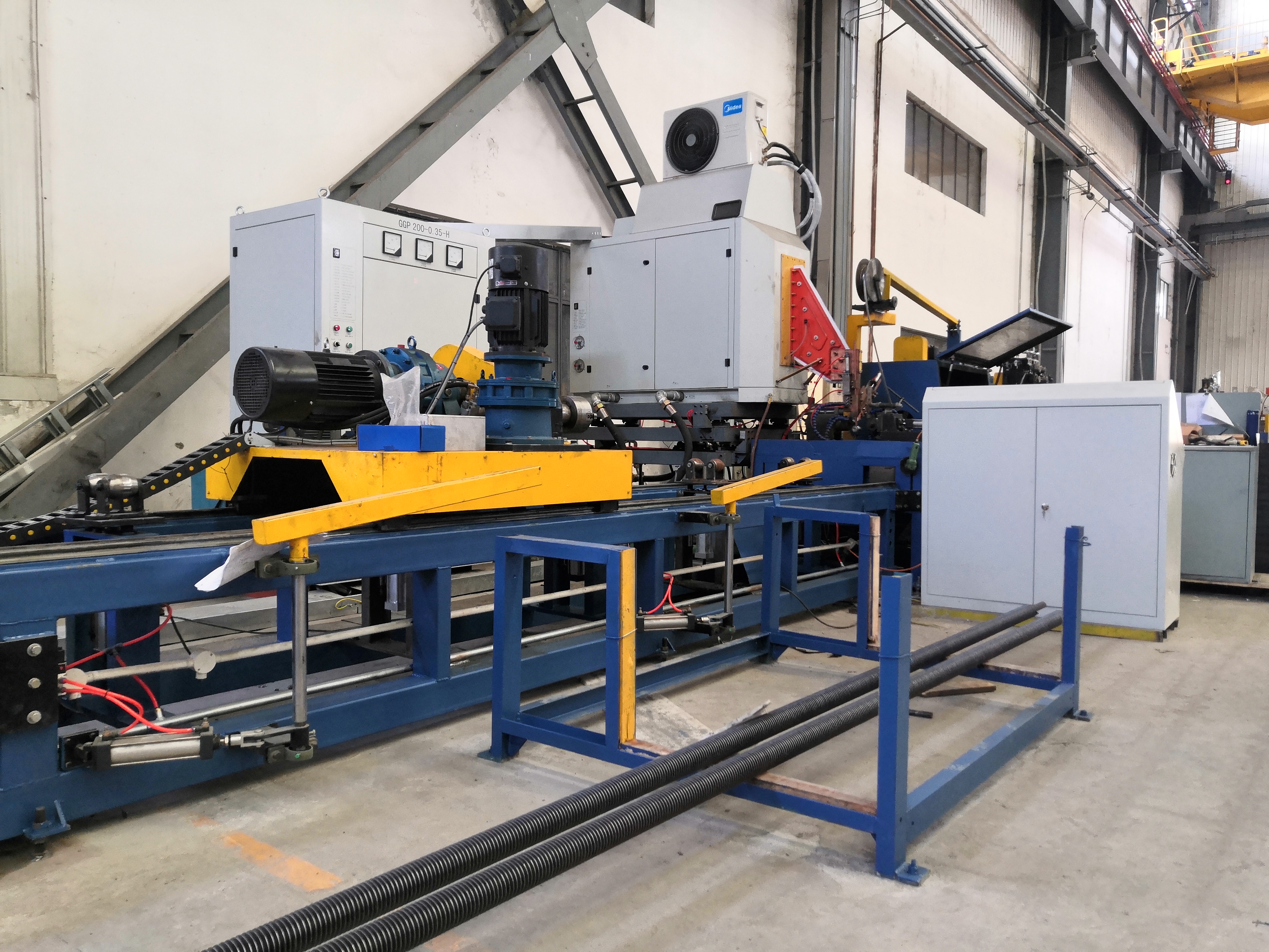 本生產(chǎn)線實現(xiàn)了鋼帶自動開卷、自動矯平、自動送帶、自動沖片、自動焊接整個全自動流程
